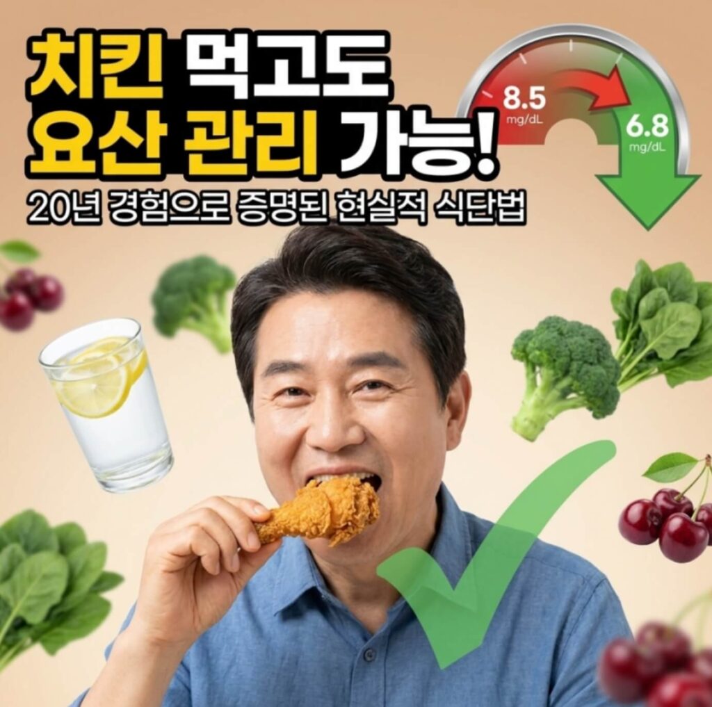 초기엔 멸치 한 마리도 무서워했지만, 지금은 회식도 하고 가끔 치킨도 먹으면서 요산 수치를 안정적으로 관리하고 있습니다. 20년 시행착오로 검증한 현실적 식단 가이드를 공개합니다.