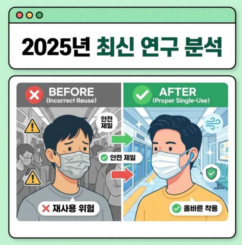 따라서 “필요할 때는 반드시 착용하되, 올바르게 사용하는 것“이 현재까지 연구가 제시하는 최선의 전략입니다. 미세플라스틱 공포 때문에 마스크를 전면 거부하기보다는, 상황에 맞는 스마트한 착용이 건강을 지키는 지혜입니다.
